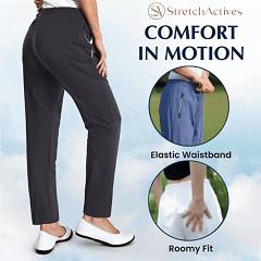 StretchActive features an elastic waist with drawcord, and 2 waterproof zipper pockets, making them the perfect staple for easy-going days.