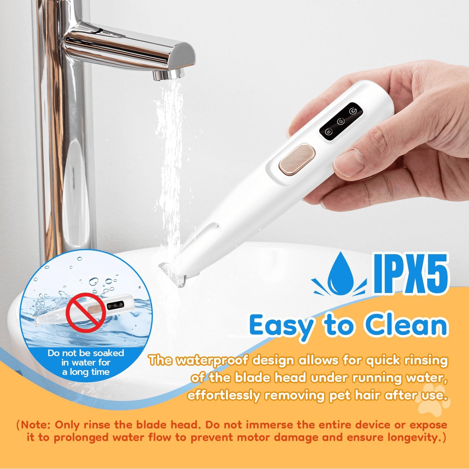 Waterproof design: The shaver is waterproof, easy and safe to use in the shower. After grooming, the shaver can be easily cleaned under running water to maintain hygiene and durability.Package Includes:1 x Paw Shaver,1 x 40cm Power Cable,1 x Tiny Cleaning Brush